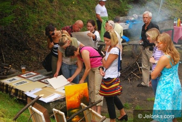 Piknik przy Dziurawej Skale z obrazem w tle