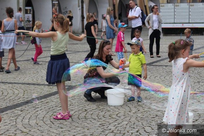 Plac Ratuszowy pełen baniek mydlanych