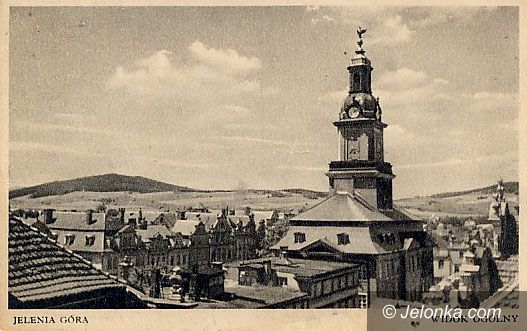 Na wieży ratuszowej ewidentny orzeł pruski, choć polski podpis pod widokówką. Po lewej dach nieistniejącej już kamienicy przy ul. Konopnickiej.