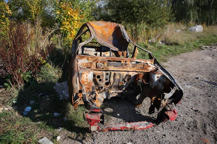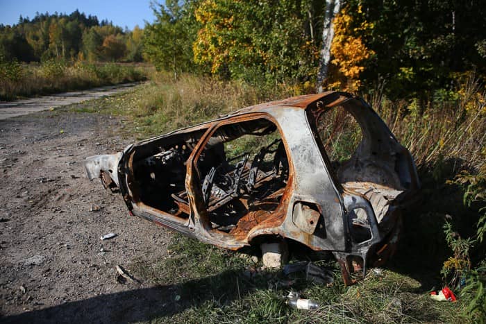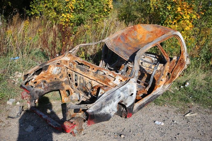 Porzucono spalony wrak samochodu