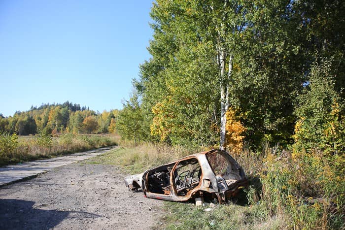 Porzucono spalony wrak samochodu