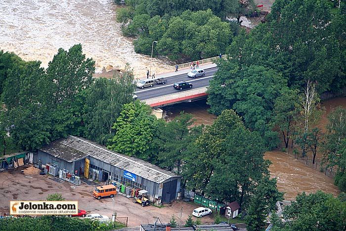 Tereny zalane przez Bóbr. W tle panorama osiedla Zabobrze.