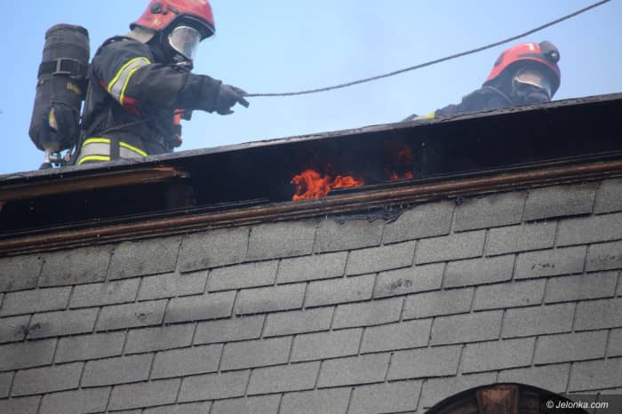 Pożar na poddaszu w centrum miasta