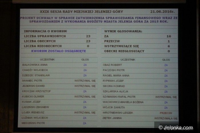 Prezydent otrzymał od radnych absolutorium