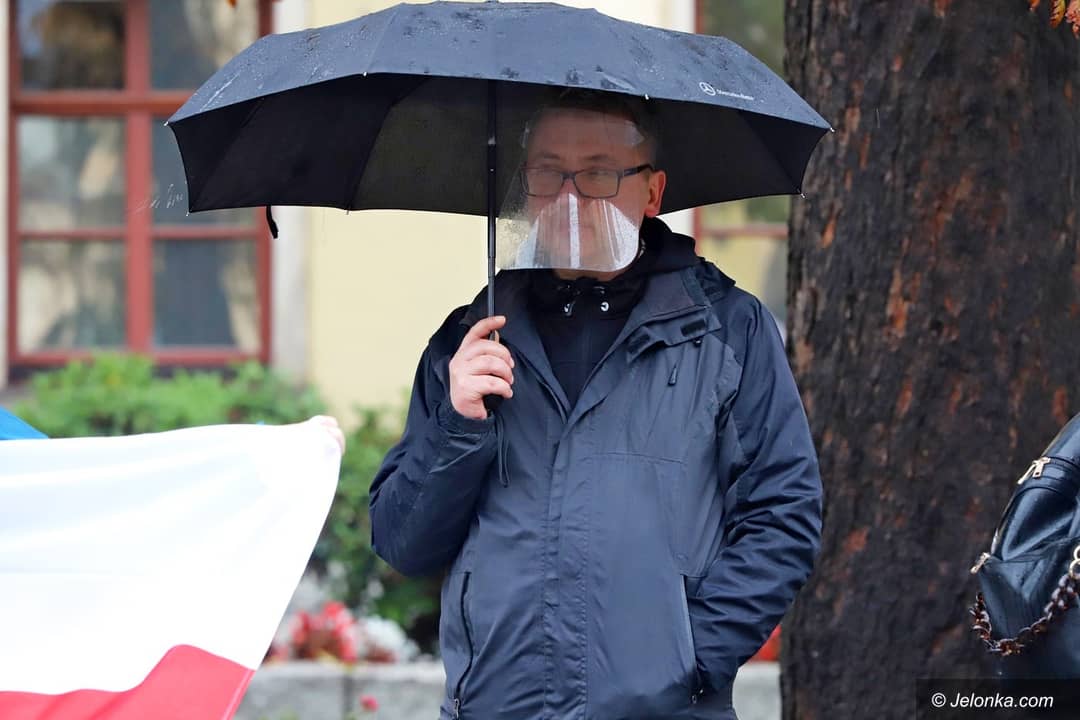 Protest w strugach deszczu