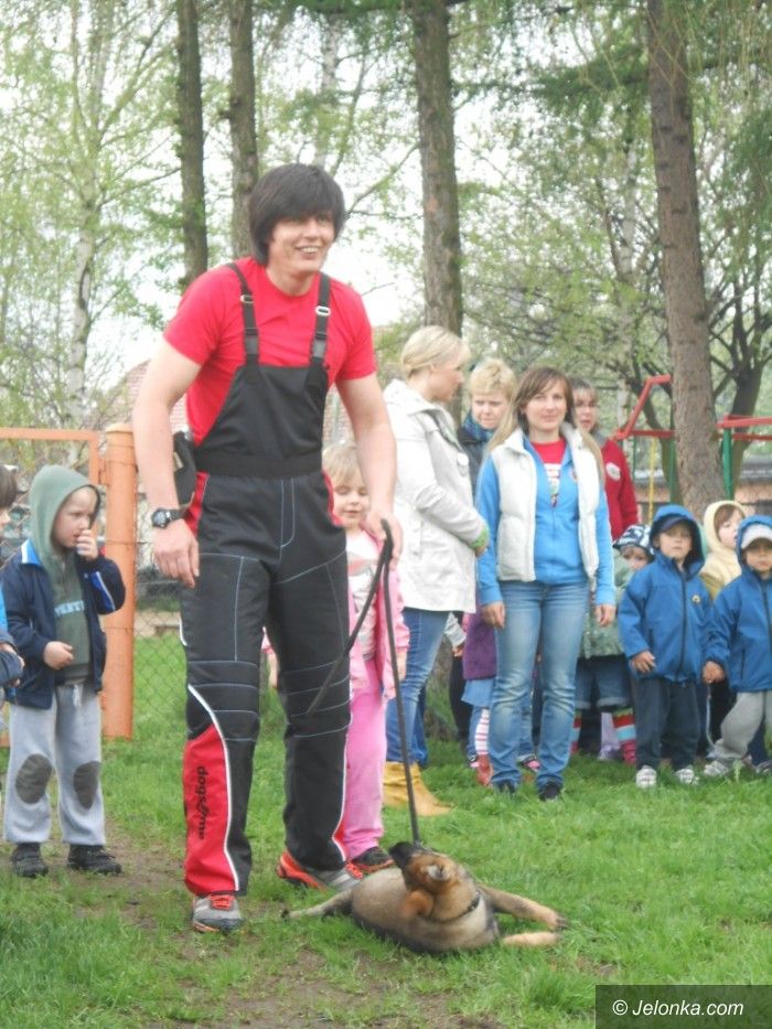 Przewodnicy i ratownicy górscy z psami na zajęciach w przedszkolu