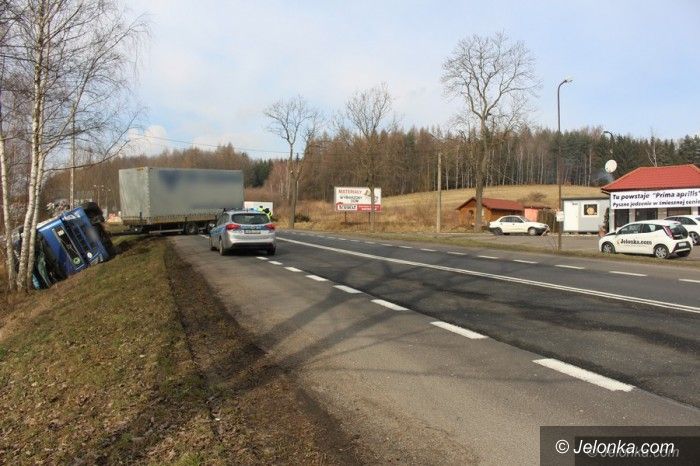 Przewróciła się ciężarówka – ruch wahadłowy