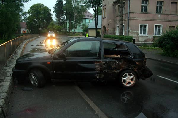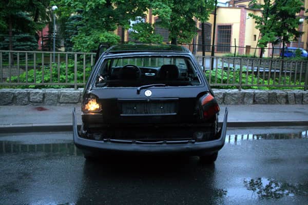 To skutki braku rozwagi i przyciskania gazu do dechy na wąskiej i śliskiej ulicy.