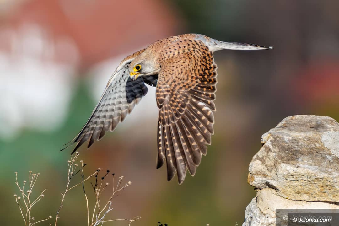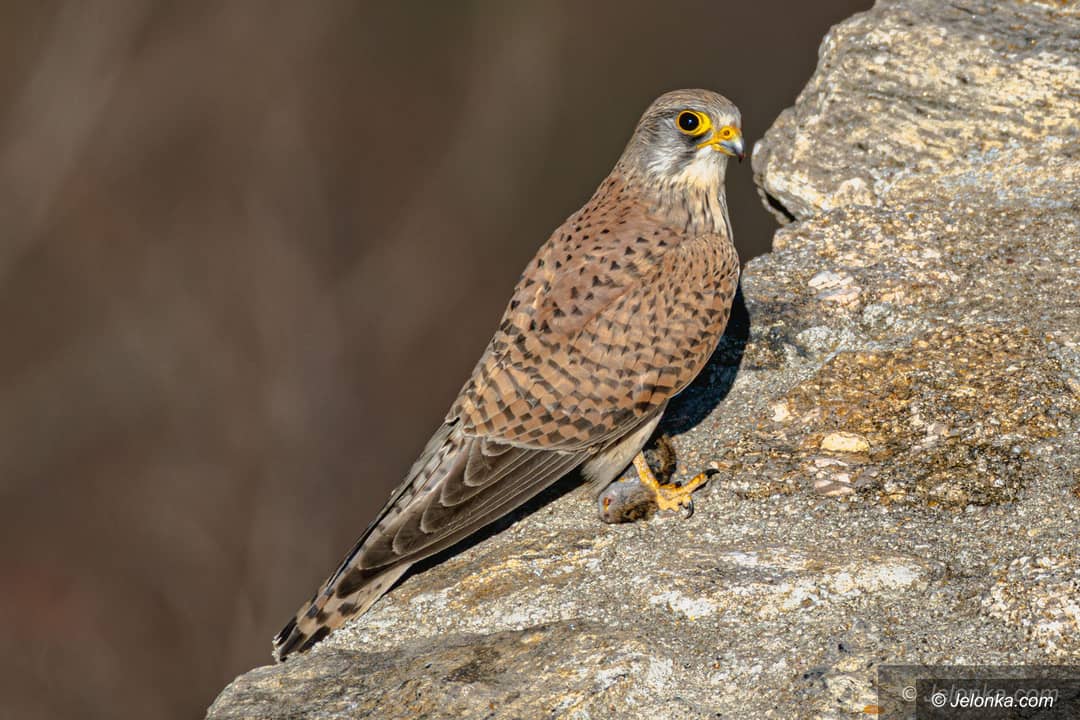 Pustułki na Zamku Chojnik. Samiec przyniósł zdobycz do gniazda