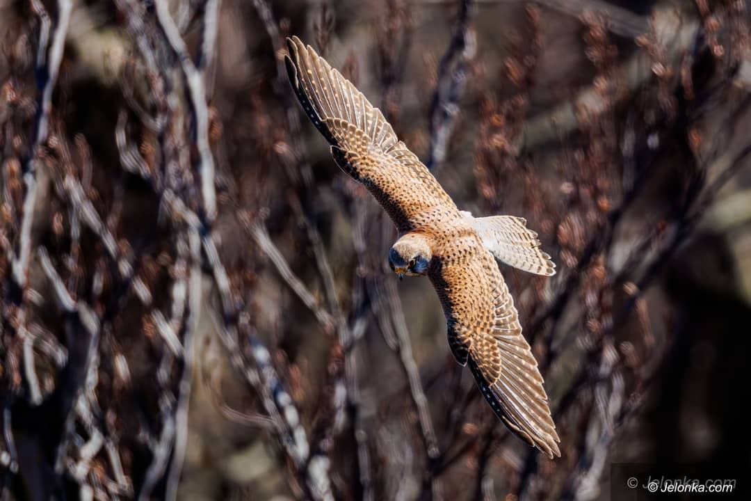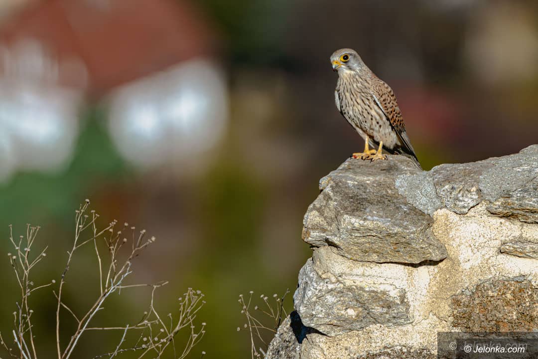 Pustułki na Zamku Chojnik. Samiec przyniósł zdobycz do gniazda