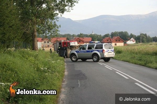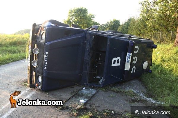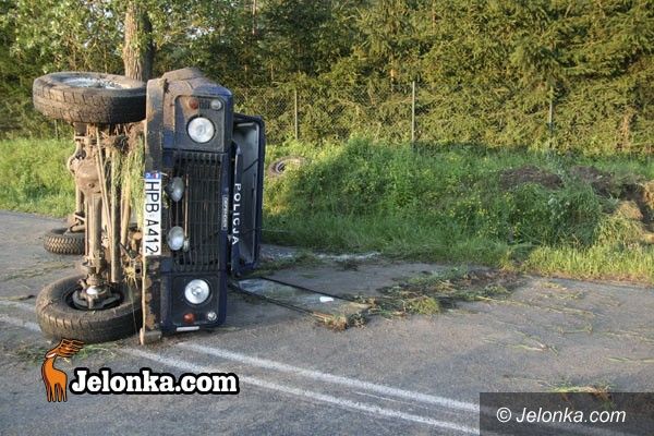 Radiowóz w rowie w Mysłakowicach
