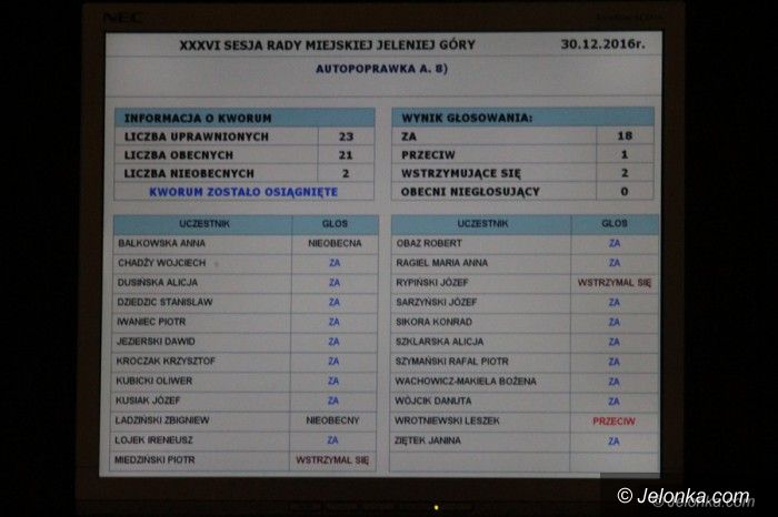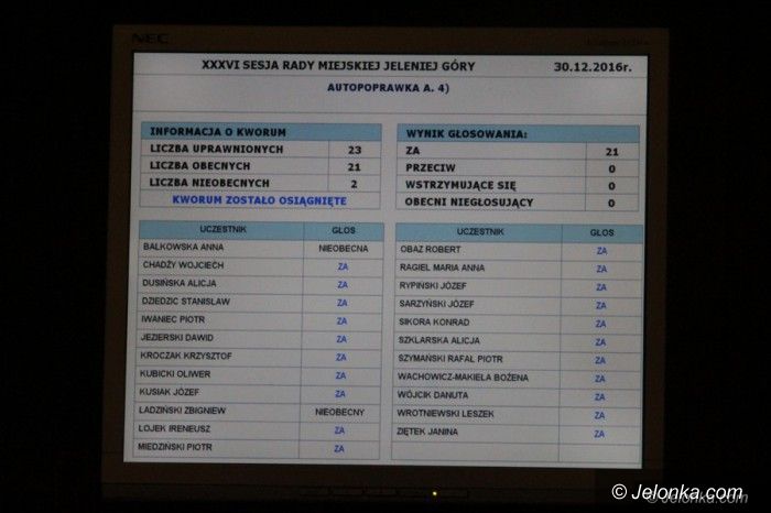 Radni uchwalili budżet Jeleniej Góry na 2017 rok