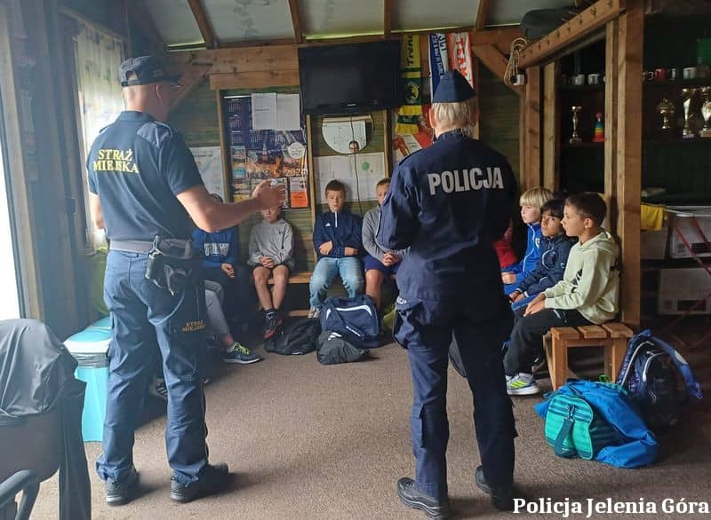 Rozmawiali z dziećmi o bezpieczeństwie w czasie wakacji – działania jeleniogórskiej policjantki i strażnika miejskiego