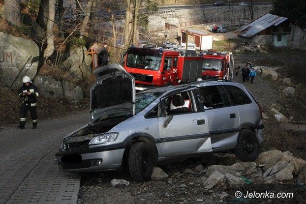 Samochód koziołkował i zawisł nad skarpą