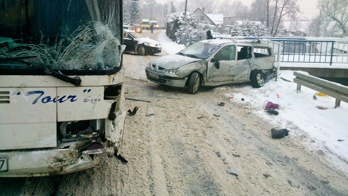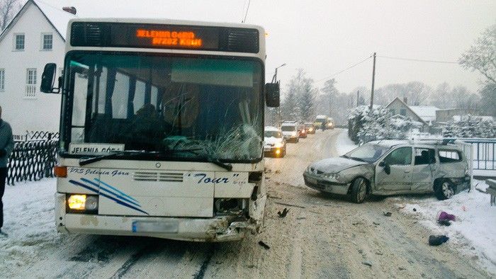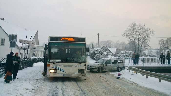 Samochód osobowy wjechał w Kostrzycy w autobus PKS