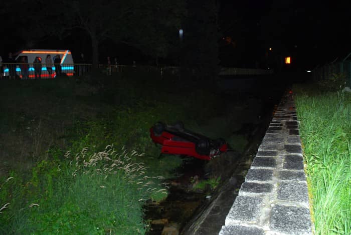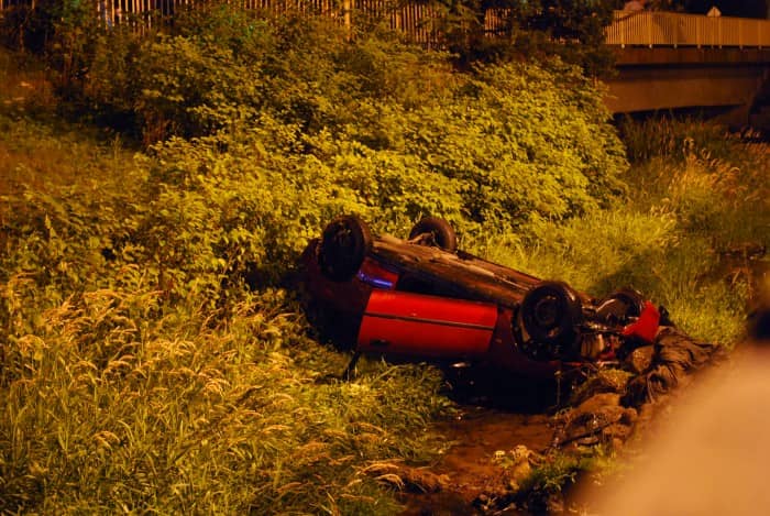 Samochód wpadł do potoku i dachował