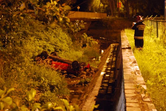 Samochód wpadł do potoku i dachował
