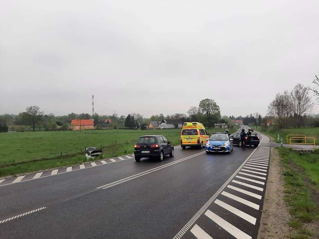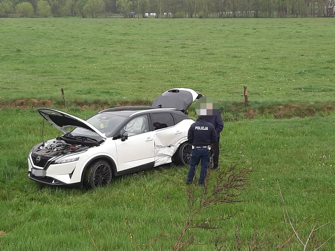Samochód wypadł z drogi na łąkę