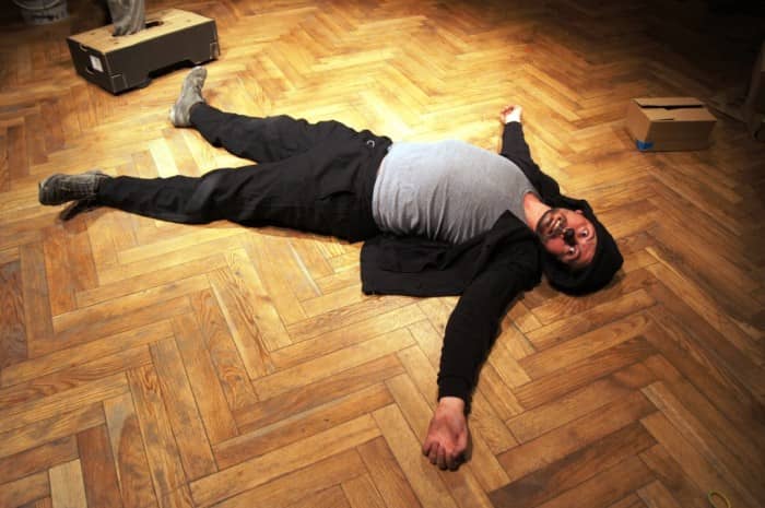 Sceniczna wędrówka zmarłych kloszardów