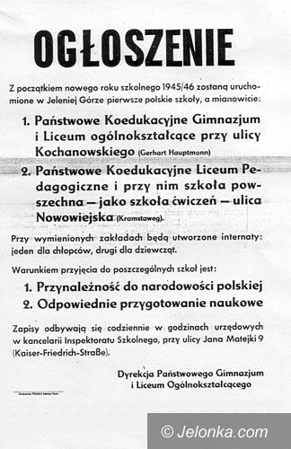 Pierwsze polskie ogłoszenie o naborze do „Żeroma”. Aby się nie pomylić – podano nazwy ulic w wersji niemieckiej.