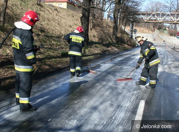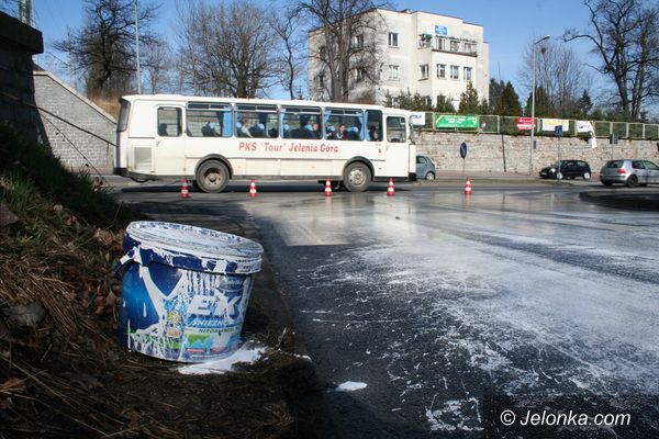 Ślisko na Karola Miarki – rozlała się farba