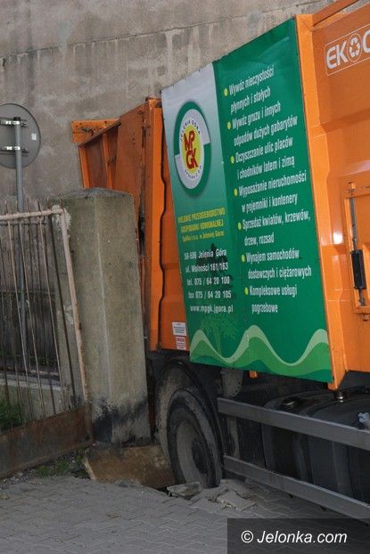 Śmieciarka wpadła kołem do studzienki