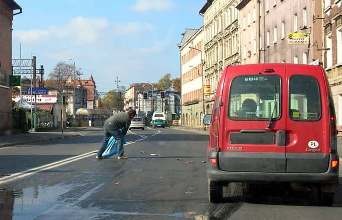 Nietypowa przygoda kierowcy furgonetki: musiał pozbierać ryby, które zgubił podczas jazdy.