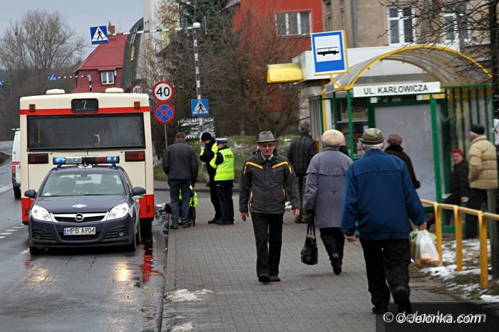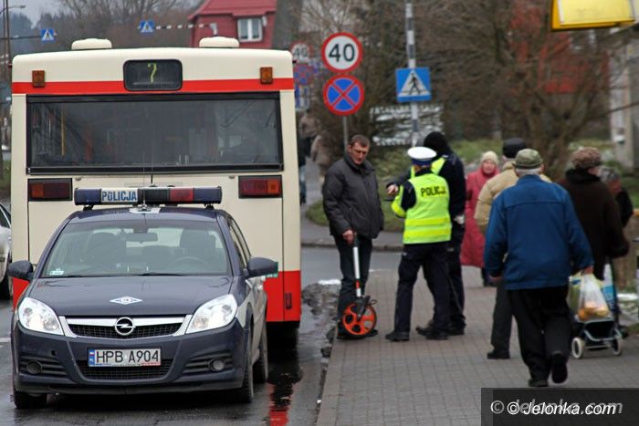 Starsza kobieta wypchnięta przez drzwi autobusu?