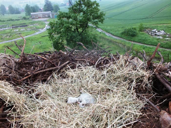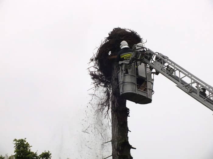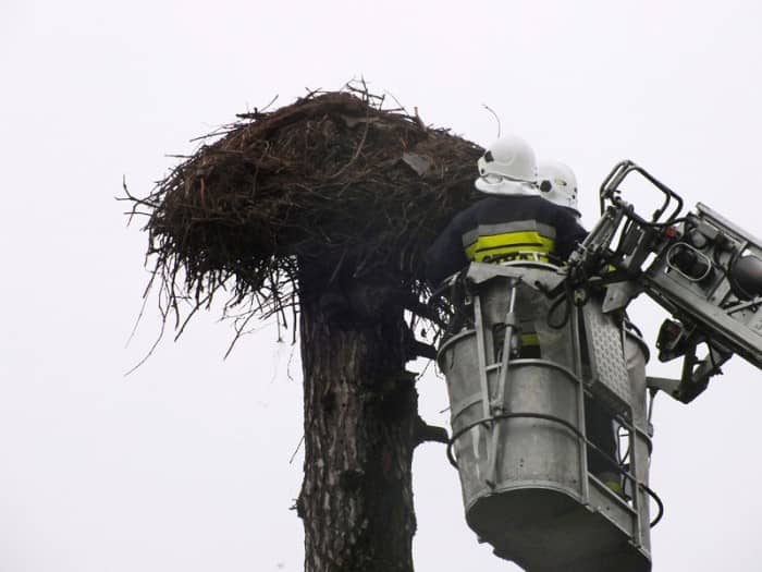Strażacy i mieszkańcy uratowali bocianiego pisklaka