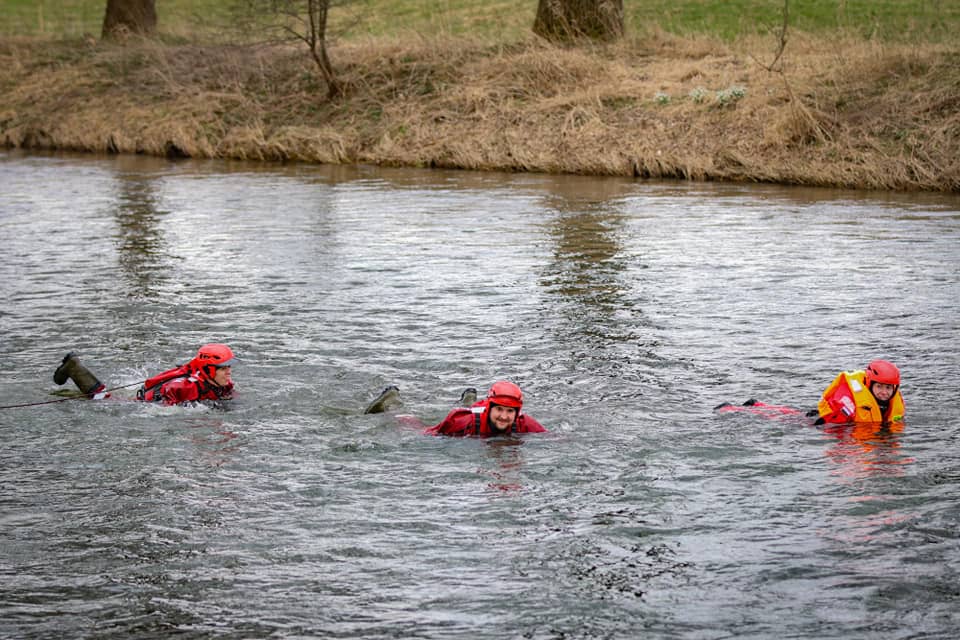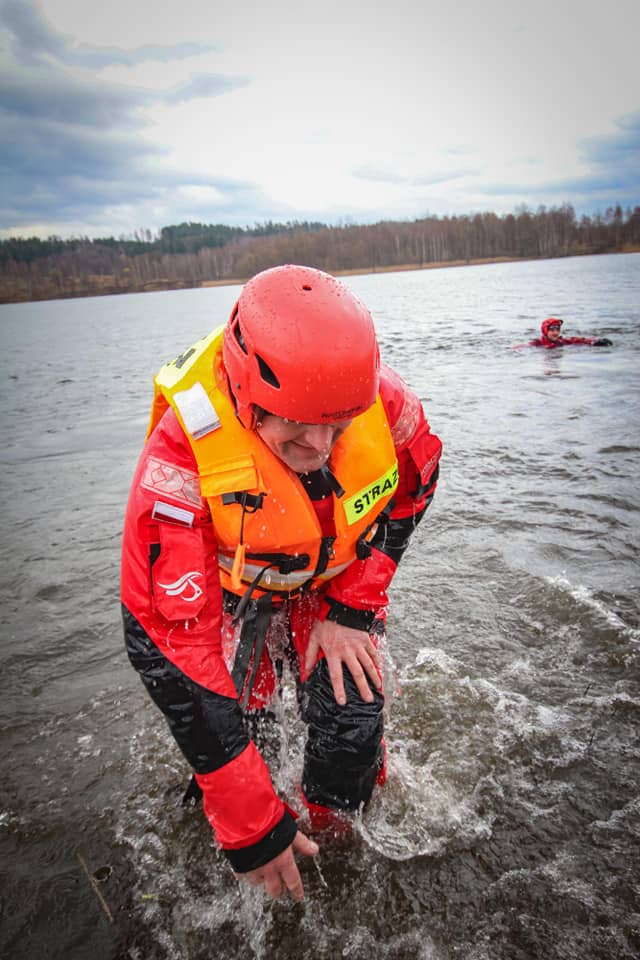 Strażacy skakali do wody