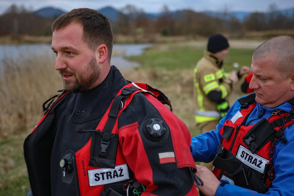 Strażacy skakali do wody