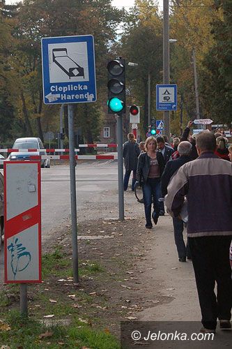 Oczekiwanie na przejazd pociągu przy ulicy Lubańskiej.