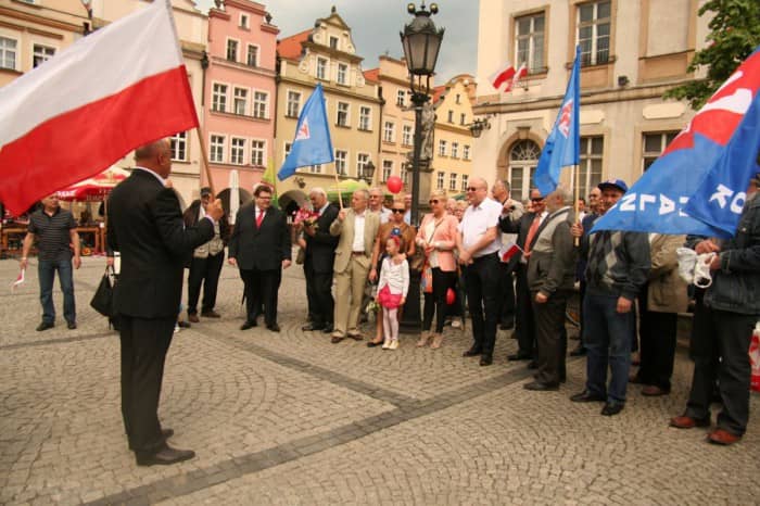Święto Pracy na Placu Ratuszowym z goździkami