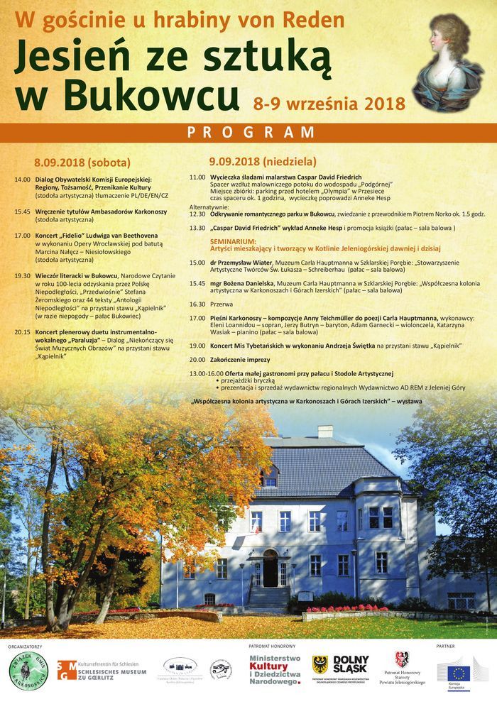 Spektakl operowy, koncert zespołu „Paraluzja, misy tybetańskie oraz seminaria i odczyty poświęcone sztuce z regionu Karkonoszy to tylko niektóre z propozycji, przygotowanych w ramach odbywającej się w najbliższy weekend (8 i 9.09) w Bukowcu dwudniowej imprezy „Jesień ze sztuką w Bukowcu – w gościnie u hrabiny von Reden”.
