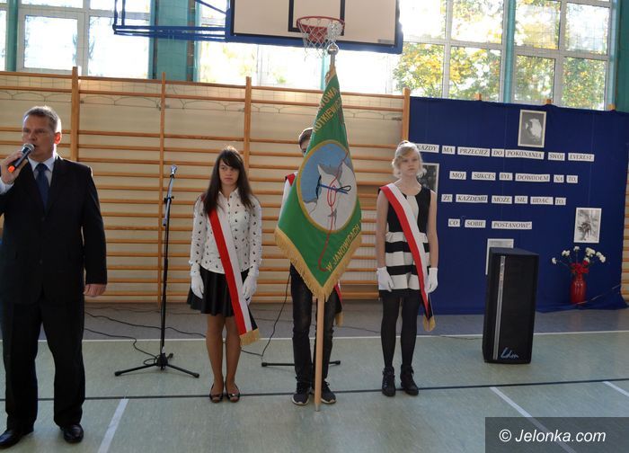 Szkoła w Janowicach z nowym sztandarem