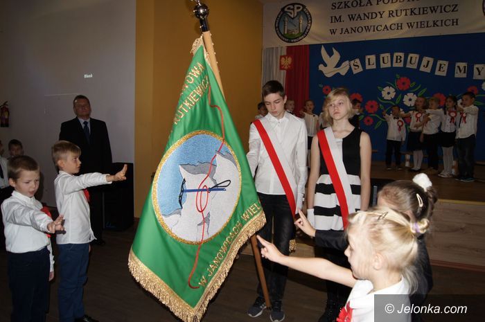 Szkoła w Janowicach z nowym sztandarem