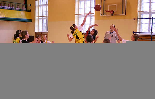 SP z Nowogrodźca (stroje koloru czerwonego) pokonała SP nr 5 ze Zgorzelca 39-29.