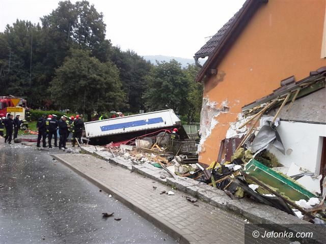 Tir uderzył w dom w Wojcieszowie