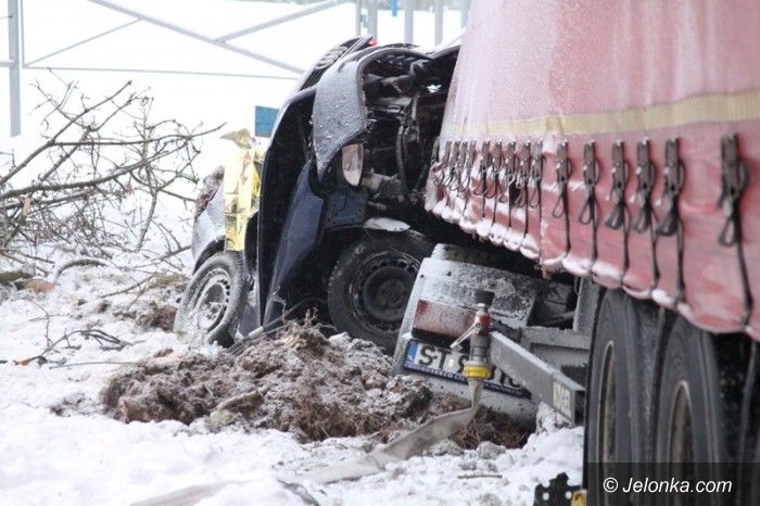 Tir zmiażdżył audi przy ul. Wrocławskiej. Jedna osoba nie żyje