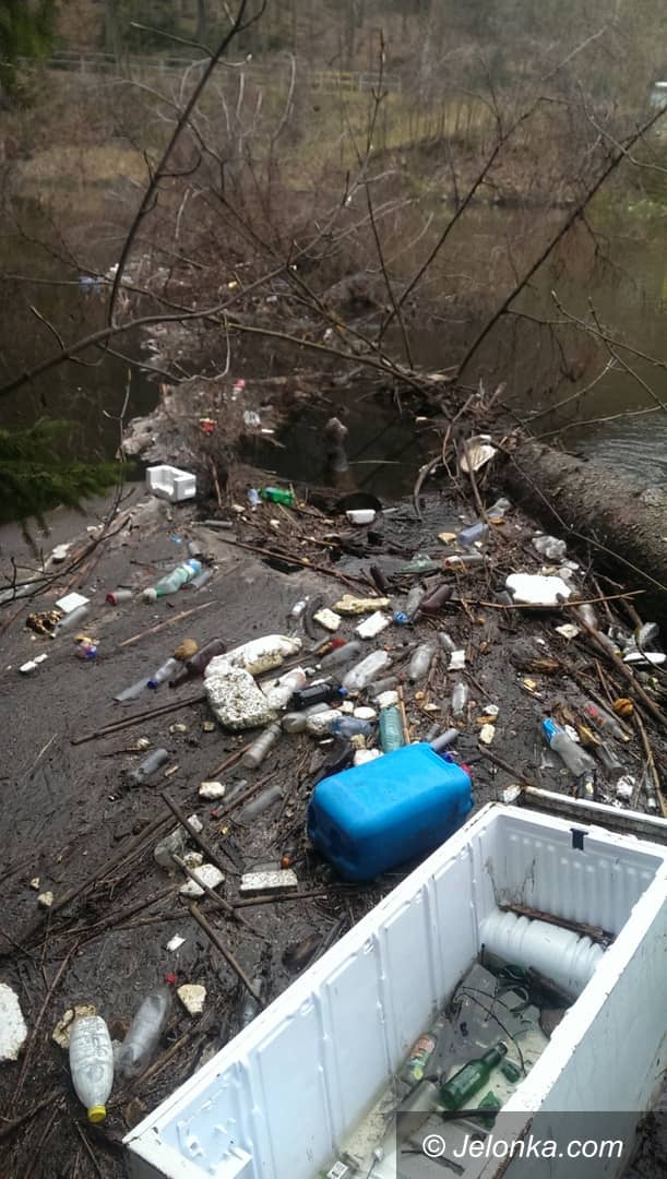 Tony śmieci przy zaporze w Siedlęcinie