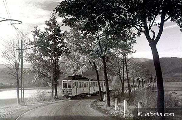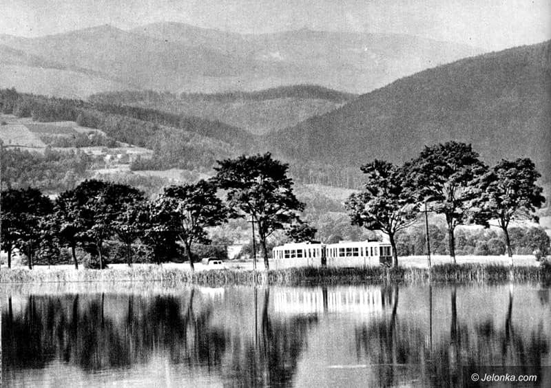 Stawy, tramwaj, a w tle Śnieżne Kotły – uroczy krajobraz.