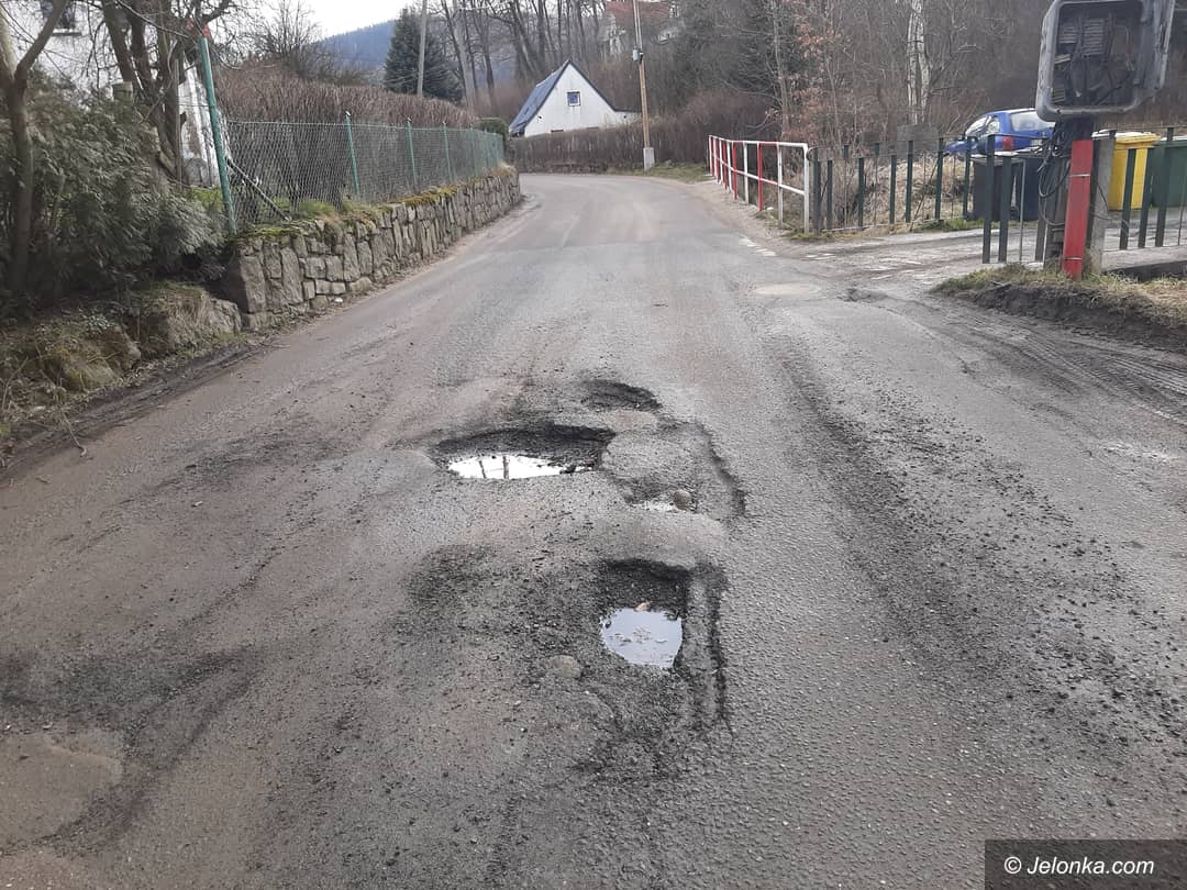 Ulica Sudecka w Miłkowie w kwietniu do remontu