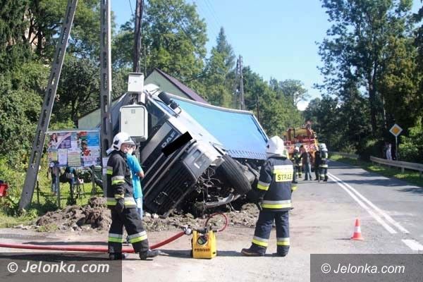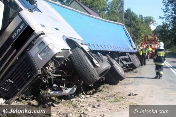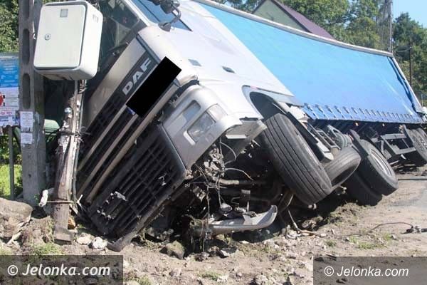 W Dziwiszowie tir stoczył się z drogi i uderzył w słup