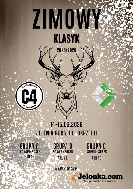 - 14-15 marca organizujemy Turniej Klasyczny "Zimowy Klasyk". Rywalizacja odbędzie się w trzech grupach rozgrywkowych w zależności od posiadanego rankingu PZSzach. Uczestnicy będą mieli okazję uzyskać normy na kategorie szachowe - zaprasza organizator Kuba Janic z Klubu C4.