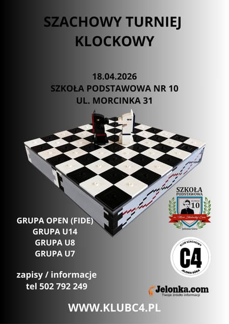 Klub Szachowy C4 będzie organizatorem dwóch imprez, które planowane są w marcu i kwietniu. Patronem medialnym wydarzenia jest portal Jelonka.com.