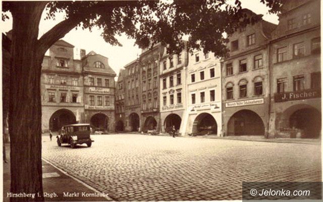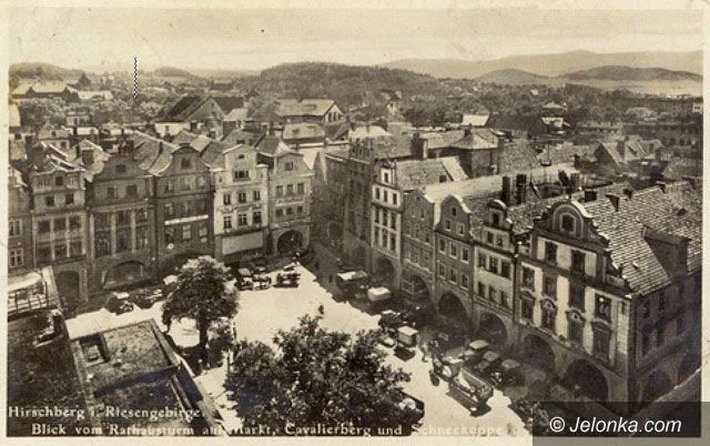 Przed ratuszem zielenią się kasztanowce, tramwaj z wagonem doczepnym zmierza w stronę placu Cieplickiego. Na rynku – stoiska handlowe. Pełnia życia w centrum miasta. Przełom lat 20 i 30 minionego wieku.