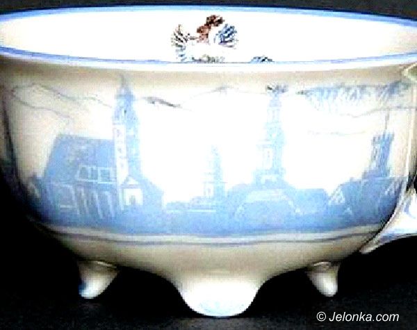 Pamiątkowa filiżanka z Jeleniej Góry przedstawia widok z wieżami i herb miasta. Jak bardzo dziś brakuje takich pamiątek…