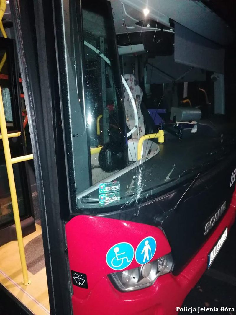 Wandal wybił szybę w autobusie