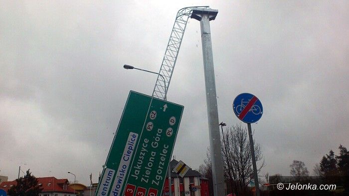 Wiatr wygiął kratownicę z tablicą informacyjną