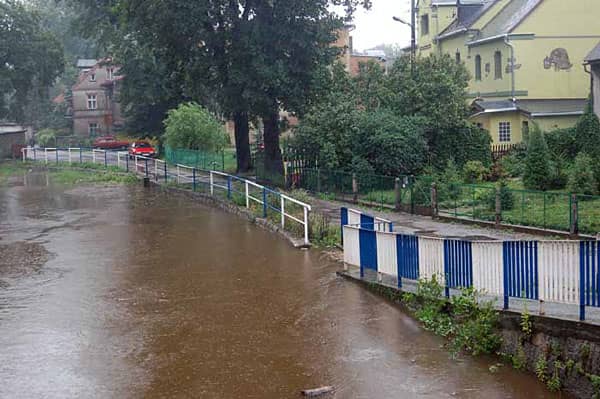 Poniżej zdjęcia z Cieplic, a także z zalanego fragmentu ulicy Wyczółkowskiego w Jeleniej Górze, z Piechowic i z brzegów rzeki Bóbr.